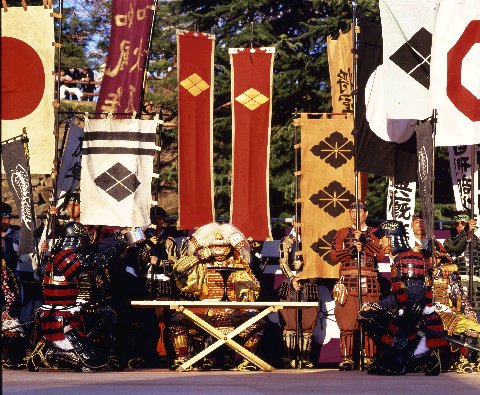 四月初,甲府市的人们纷纷及时赶回以表达对战国时代的一位名将――武田信玄的敬意。城市里随处可见风林火山的复制品,它曾是信玄的标志。节日中最精彩的部分要属武田军游行,队伍由当地市民组成,他们身着24位武士的服装,加上超过1500名勇士组成的庞大队伍,举着火把行进。