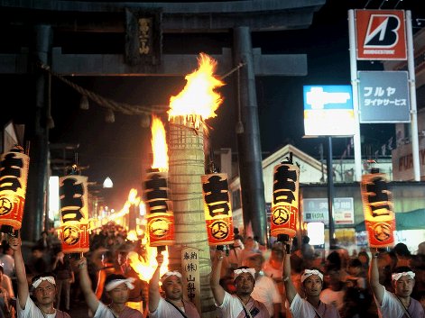 8月26日在富士浅间神社庆祝镇火节,标志着攀登富士山的季节告终。这是当今日本仍然留存的三大独特的节日之一。在富士吉田,家家户户门前燃起一支火把,整个城市看上去宛如一片火海。节日后不久,富士山的夏天就结束了。