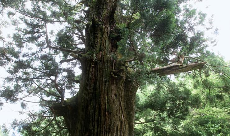 历史悠久、蜿蜒曲折的甲州街道沿线山路旁,矢立雪松巍然矗立,高达28米,宽15米,令人震撼。据估计,这棵雪松已有1000多年的历史。不同寻常的是,这棵树的内部是中空的,底部树皮已然开裂,形成了一个树洞,洞内足以容纳至少两名成年人。(请注意,出于对古树的保护,树洞禁止入内。)