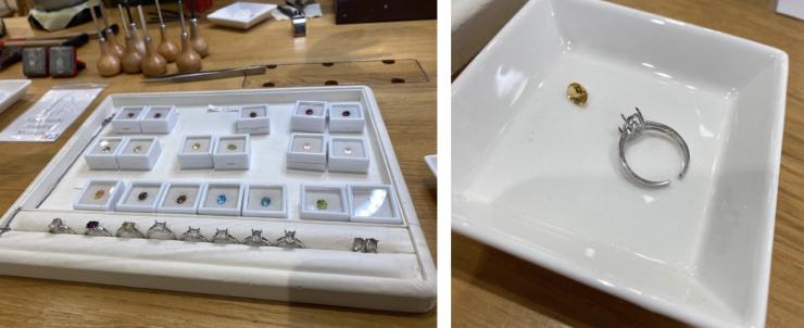 There are two different types of workshops offered at the museum. You can choose between polishing (pendant stones) and precious metal crafts (rings or necklaces). I decided to challenge the ring-making workshop! I picked out a nice yellow-ish stone, and chose a ring base to allow the jewel to sit horizontally. Then, all I had to do was set the stone in place!