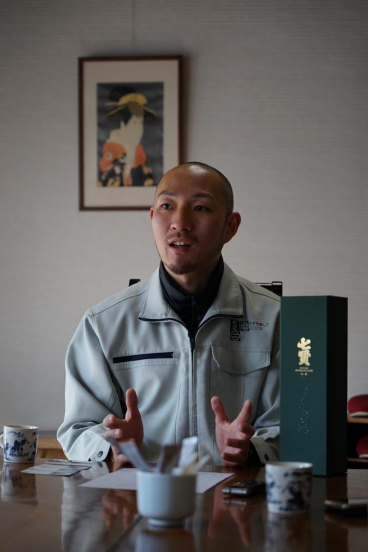 A la suite de notre visite de l’usine, nous avons eu la chance d’interviewer Ryogo Kitahara, « sake master » passionné par son métier, appartenant à la treizième génération de propriétaires (son frère Tsushima est l’actuel directeur de l’entreprise). Originaire du département de Niigata, M. Kitahara a étudié tous les processus liés à la fermentation à l’université, et a perfectionné ses compétences dans la préfecture d’Okayama et aux Etats-Unis.