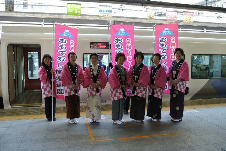 平成24年2月1日に県内の旅館・ホテルのおかみさんで構成されるやまなし女将の会による啓発事業が新宿駅で実施されました。