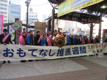 平成25年2月1日に、山梨県議会・やまなし女将の会・峡南高校・県観光部による啓発事業が甲府駅で実施されました。
