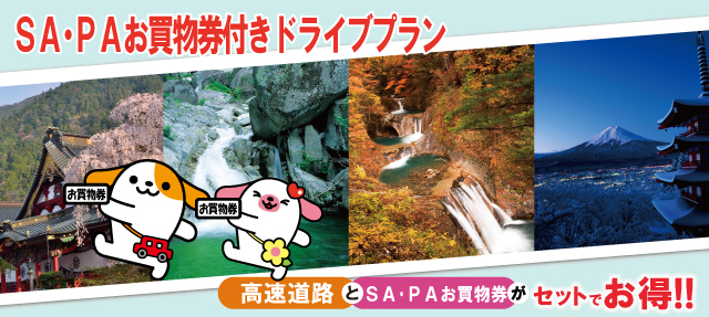 首都圏から「やまなし百名湯」巡りにお出かけの際は、NEXCO中日本の速旅「SA・PAお買物券付きドライブプラン」がおススメです。