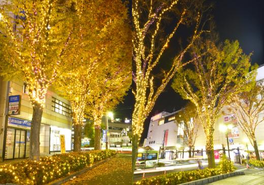 甲府駅南口が幻想的な空間に。7色に変化するカラーライトやLEDイルミネーションが冬の夜を彩ります。
