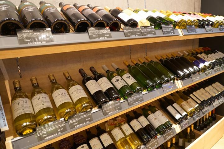 「甲州」や「マスカット・ベーリーA」など一押しのワインが並ぶ。お土産にも。