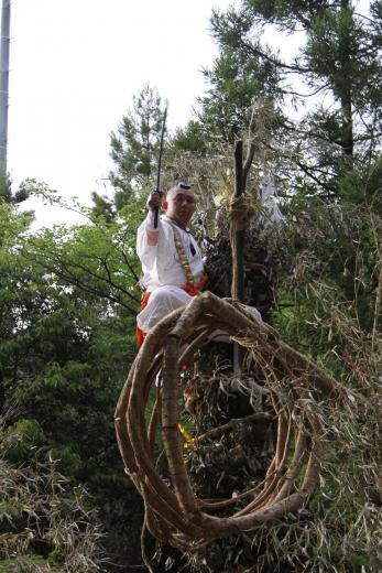 下では若者達が投げ落とす藤蔓を待ちかまえる人達でごった返しますが、この藤蔓を持ち帰ることができると大蛇同様、御利益があるといわれているため、皆必至になって奪い合います。その様子はまさに奇祭と呼ぶにふさわしい光景です。
