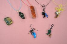お好きな天然石を選んで頂いて、ワイヤーを使ってペンダントヘッドを作って頂きます。また、天然石勾玉のペンダントヘッドを作る…