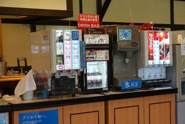 Você pode se servir a vontade no balcão de bebidas que oferece cafés, chás e sucos variados.