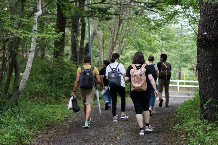 Em meio a natureza, aos pés do Monte Yatsugatake, é possível aproveitar uma trilha que atravessa a exuberante Utsukushi no Mori. Realizamos o trajeto que vai da entrada da floresta até a fazenda Yatsugatake Bokujo, gerida pela governo provincial, em 2h e 30min. Tivemos a orientação do Sr.Nakamura, guia do centro de Atividades ao ar livre de Yatsugatake. A presença do guia transforma a experiência da trilha pelos caminhos da Utsukushi yama numa envolvente aula prática de história e ecologia de Kiysato. O Sr. Nakamura nos explicou brevemente sobra flora e a fauna do local, comentando alterações na paisagem ao longo dos tempos, sempre focando nas espécimes e rastros de vida selvagem visíveis em cada parte do trajeto.