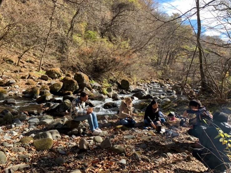 Neste outono tivemos a oportunidade de participar de alguns dos programas do Yatsugatake Outdoor Activities (utilizaremos a sigla YOA no presente texto). Desta vez fizemos um piquenique a beira de um riacho cuja trilha passa por dentro de uma floresta. Para nos aquecermos neste final de outono, cuja temperatura não nos deixa esquecer que estamos em meio às montanhas, fizemos uma fogueira e assamos nossos sanduíches e fizemos um café fresquinho.