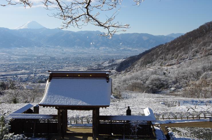 武田信玄の曾祖父信昌を開基とし永正元年(1504)に開創されました。境内には史跡である信昌の墓があるほか、重要な文化財が数多く残されています。境内からの眺めは関東富士見百景に選ばれ、近くには新日本三大夜景の笛吹川フルーツ公園があります。
