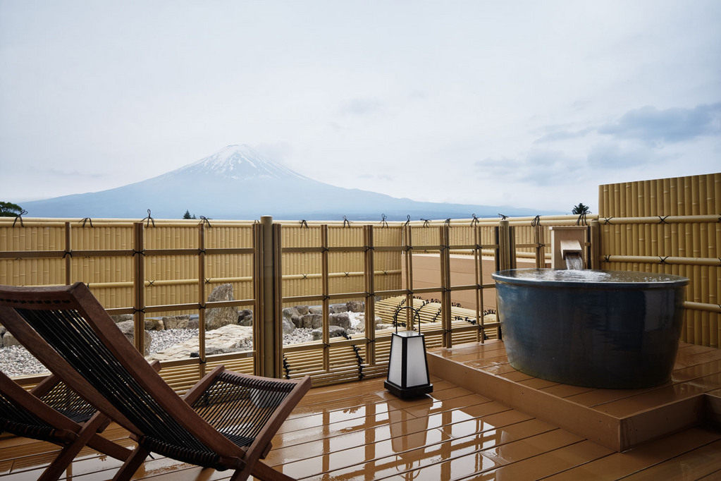 お部屋は、温泉露天風呂付和洋特別室(富士山側)、温泉露天風呂付客室(河口湖側)、河口湖側「テラス付和洋室」、快適に過ごせる4タイプの客室「たまゆら」等々、多彩な客室からお好みによりお選びいただけます。露天風呂は温泉、洗面所はダブルシンクと嬉しい限りです。ベッドタイプのお部屋も床は畳。これも小さい子どもにとっては安心です。