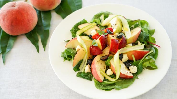 日本一の生産量を誇る山梨の「もも」。桃というと、柔らかな食感をイメージするかもしれません。でも、山梨ではカリカリッと噛んで食べる固い桃を好む人が多いです。それは、とれたての新鮮な桃は「固くて甘い」から。しかも皮のつきのまま、がぶりと食べるのが最もおいしい食べ方なのです。 |