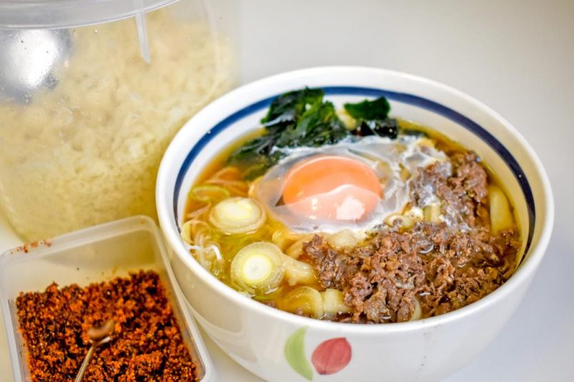肉うどん・肉つけうどんが人気。醤油と味噌ベースのつゆと麺の硬さとモチモチ感が絶妙でクセになる。