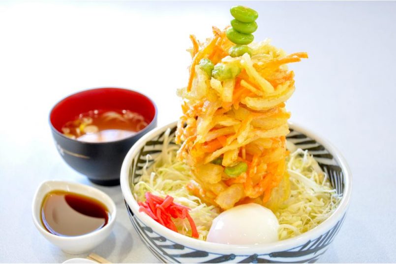 また、特産品のあけぼの大豆をふんだんに使った「みのぶかき揚げタワー丼」は若者にも人気で写真映え間違いなし!
