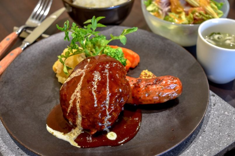 牛も豚も鶏も山梨県産のお肉にこだわっていて、甲州牛入りのハンバーグや甲斐甘み豚を使ったソーセージが絶品!お肉だけでなくお米も県産の武川米、種類豊富に取り揃えているお酒も県産のもの。