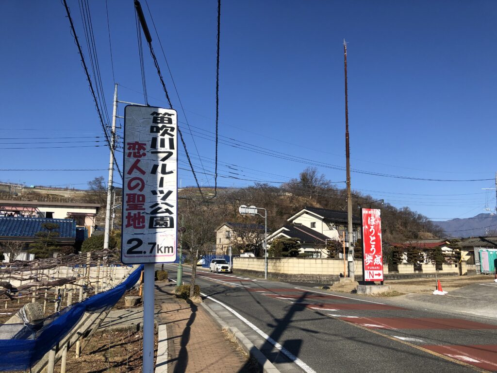 フルーツパーク坂は、「新日本三大夜景」に認定されている山梨市フルーツ公園へ上る坂。そのフルーツ公園までの道を進み、途中にある激坂区間をぬけて「ほったらかし温泉」まで上るコースです。